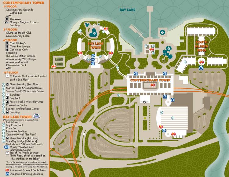Contemporary Resort & Bay Lake Tower Maps WDW Prep School