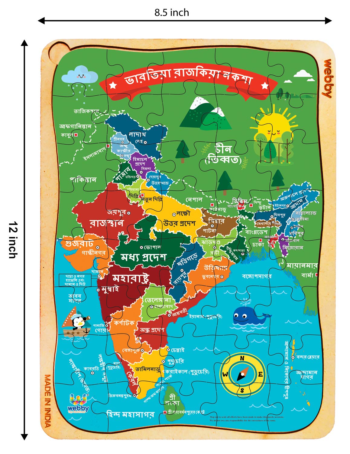 Webby India Map in Bengali Wooden Floor Puzzle, 40 Pcs – Webby Toys