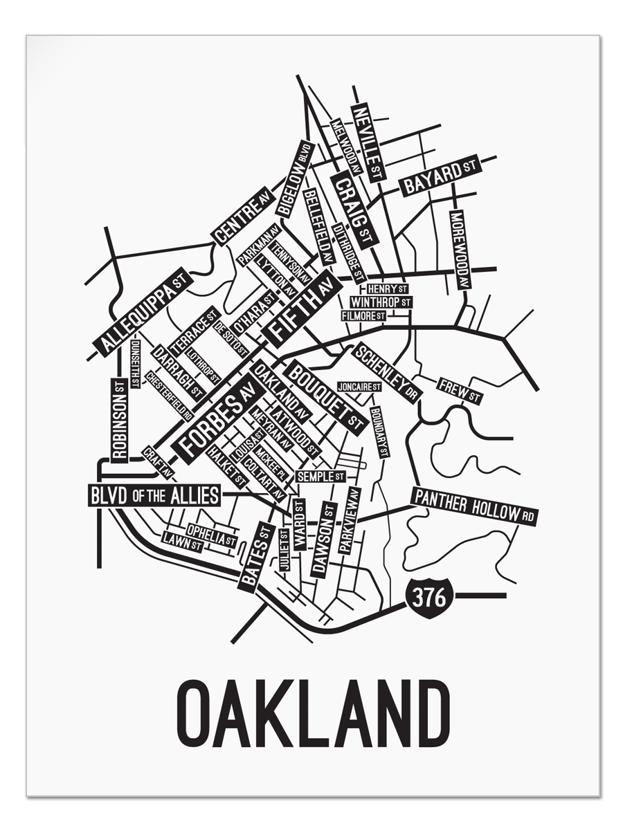 Modern Map of Oakland, Pittsburgh (LIGHT)” Poster for Sale by